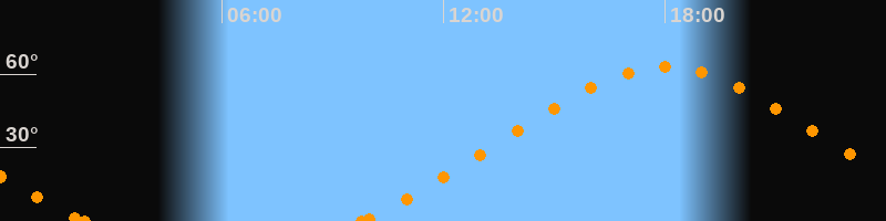 Höchster Stand (Kulmination)18:00 Uhr (h = 62.9°)