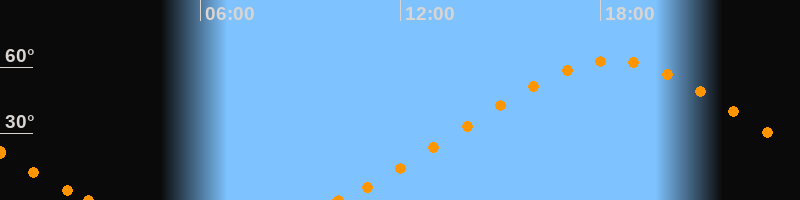 Höchster Stand (Kulmination)18:21 Uhr (h = 62.9°)