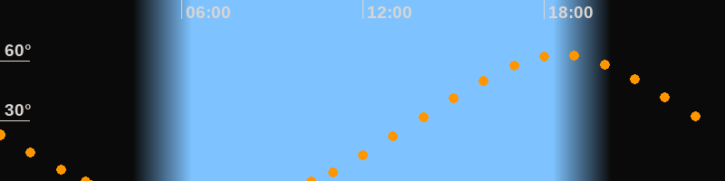 Höchster Stand (Kulmination)18:32 Uhr (h = 63°)