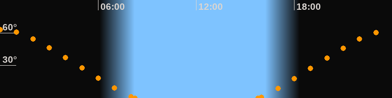 Höchster Stand (Kulmination)23:59 Uhr (h = 62.8°)
