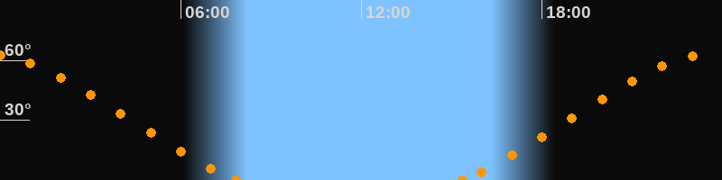 Höchster Stand (Kulmination)23:34 Uhr (h = 62.8°)