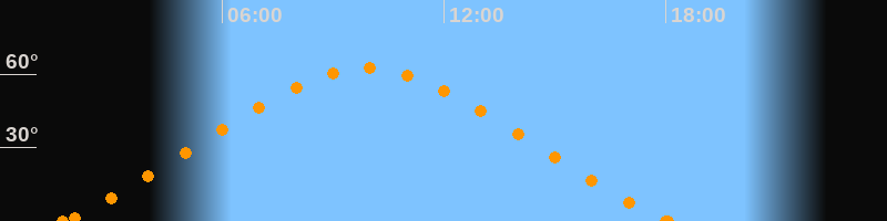 Höchster Stand (Kulmination)09:54 Uhr (h = 62.4°)