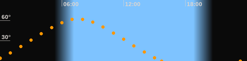 Höchster Stand (Kulmination)07:33 Uhr (h = 62.3°)