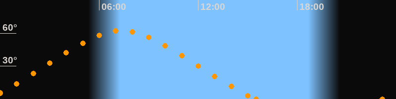 Höchster Stand (Kulmination)07:22 Uhr (h = 62.3°)
