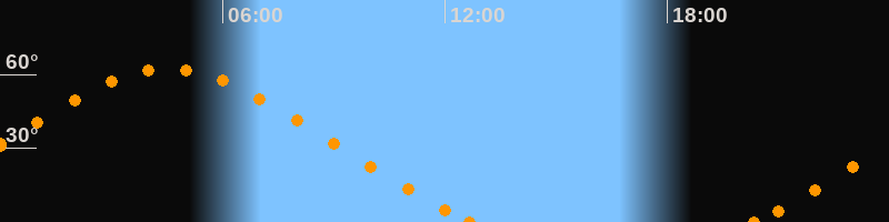 Höchster Stand (Kulmination)04:32 Uhr (h = 62.3°)
