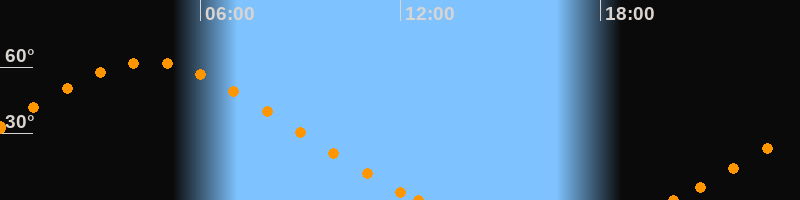 Höchster Stand (Kulmination)04:24 Uhr (h = 62.3°)