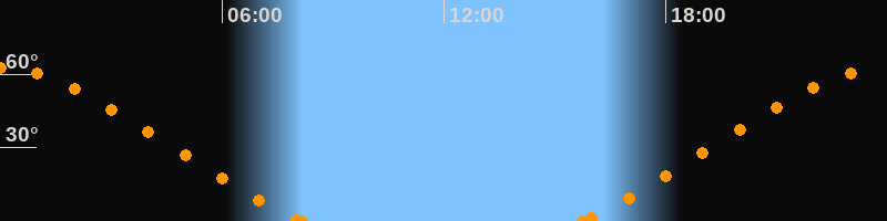 Höchster Stand (Kulmination)23:55 Uhr (h = 62.5°)