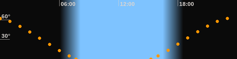Höchster Stand (Kulmination)23:26 Uhr (h = 62.5°)