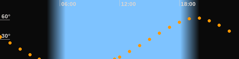 Höchster Stand (Kulmination)19:40 Uhr (h = 62.7°)