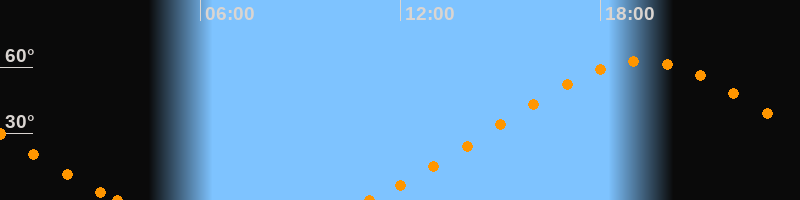 Höchster Stand (Kulmination)19:16 Uhr (h = 62.7°)