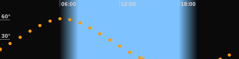 Höchster Stand (Kulmination)06:16 Uhr (h = 61.8°)
