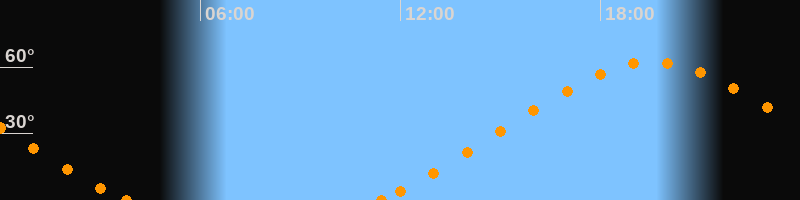 Höchster Stand (Kulmination)19:34 Uhr (h = 62.3°)