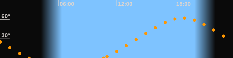 Höchster Stand (Kulmination)18:47 Uhr (h = 62.3°)
