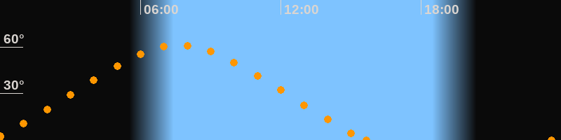 Höchster Stand (Kulmination)07:39 Uhr (h = 61.1°)