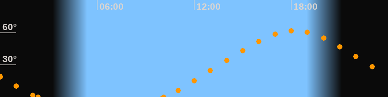 Höchster Stand (Kulmination)18:11 Uhr (h = 61.7°)