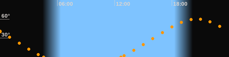 Höchster Stand (Kulmination)20:34 Uhr (h = 60.2°)
