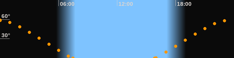Höchster Stand (Kulmination)23:37 Uhr (h = 59°)