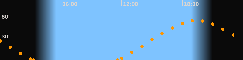 Höchster Stand (Kulmination)19:23 Uhr (h = 59.3°)