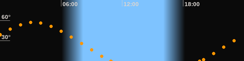 Höchster Stand (Kulmination)03:18 Uhr (h = 57.2°)