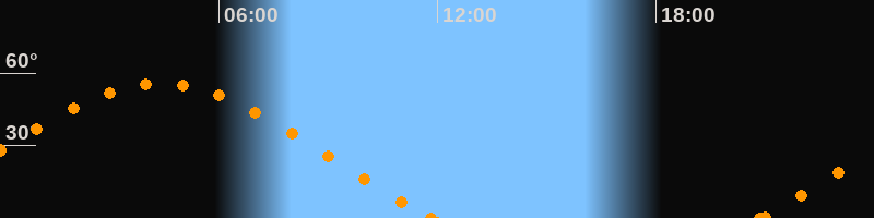 Aufgang20:51 Uhr im Nordosten (αAz = 62.6°)
