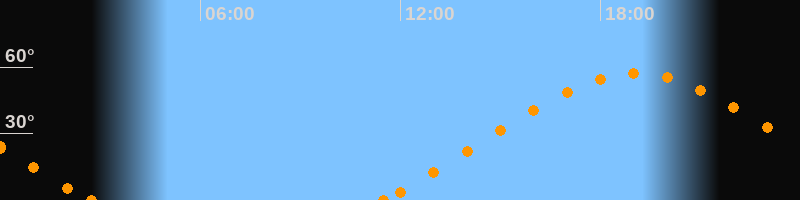 Höchster Stand (Kulmination)19:04 Uhr (h = 56.9°)