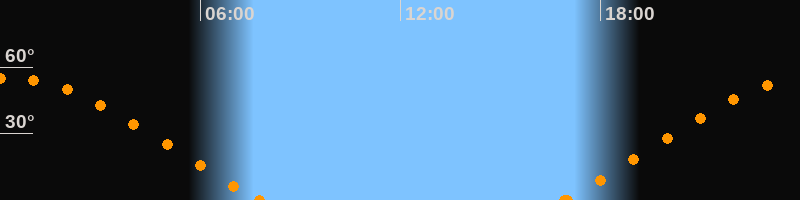 Höchster Stand (Kulmination)00:18 Uhr (h = 55°)