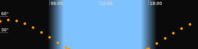 Höchster Stand (Kulmination)01:07 Uhr (h = 53.4°)