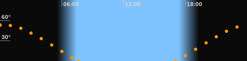 Höchster Stand (Kulmination)00:18 Uhr (h = 53.6°)