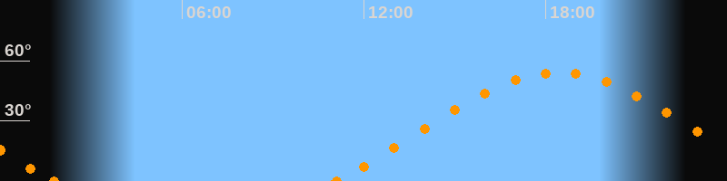 Höchster Stand (Kulmination)18:25 Uhr (h = 54.1°)