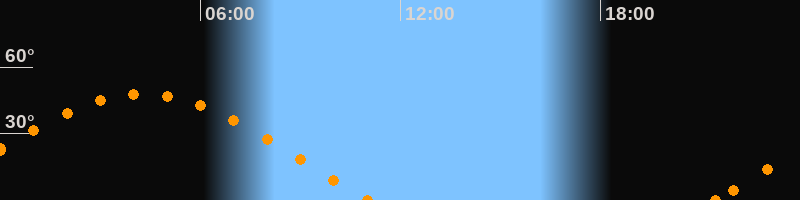 Höchster Stand (Kulmination)04:16 Uhr (h = 47.7°)