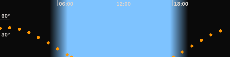 Höchster Stand (Kulmination)00:44 Uhr (h = 46.6°)