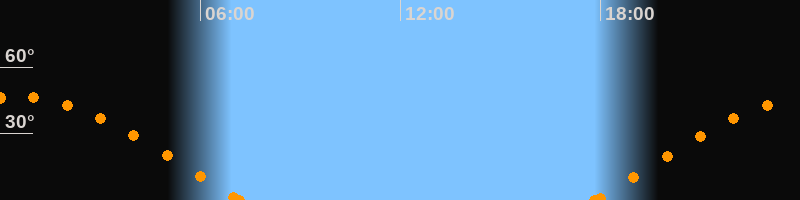 Höchster Stand (Kulmination)00:28 Uhr (h = 46.7°)