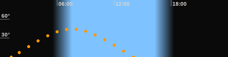 Höchster Stand (Kulmination)07:36 Uhr (h = 44.2°)
