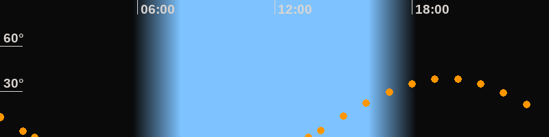 Höchster Stand (Kulmination)19:27 Uhr (h = 38.6°)