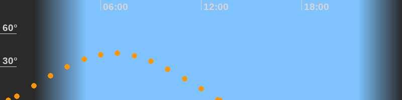Aufgang00:29 Uhr im Osten (αAz = 84.7°)