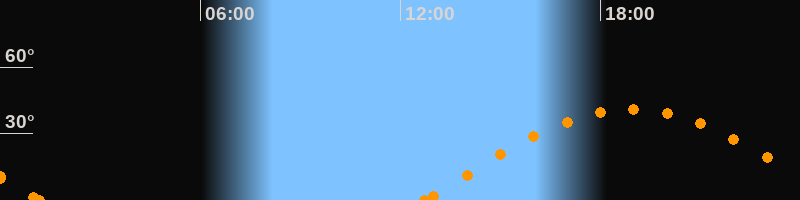 Höchster Stand (Kulmination)18:55 Uhr (h = 41.1°)