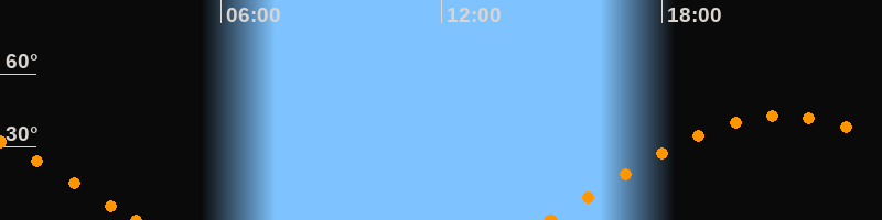 Höchster Stand (Kulmination)21:17 Uhr (h = 42.9°)