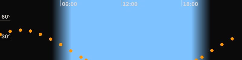 Höchster Stand (Kulmination)02:01 Uhr (h = 45.1°)