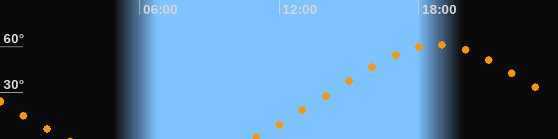 Höchster Stand (Kulmination)18:47 Uhr (h = 61,3°)