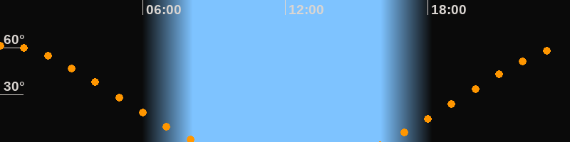 Höchster Stand (Kulmination)00:11 Uhr (h = 61,3°)