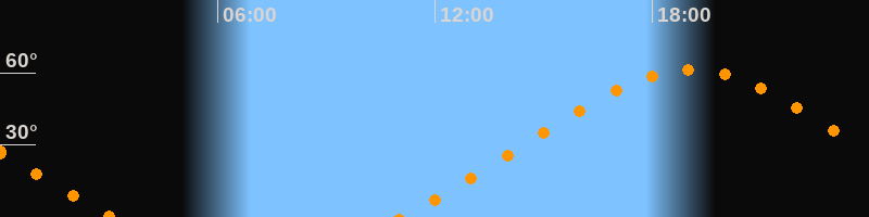 Höchster Stand (Kulmination)19:03 Uhr (h = 61,3°)