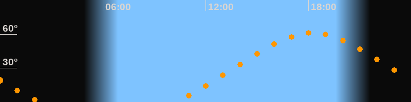 Höchster Stand (Kulmination)18:14 Uhr (h = 61,3°)