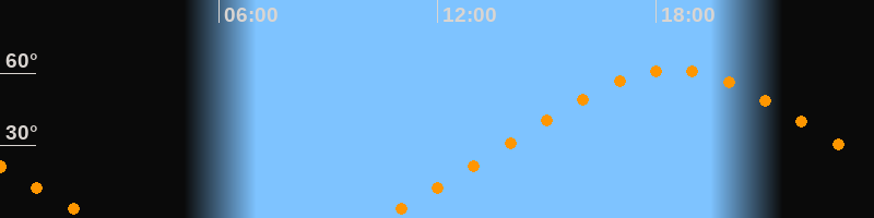 Höchster Stand (Kulmination)18:28 Uhr (h = 61,3°)