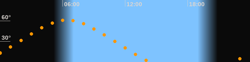 Höchster Stand (Kulmination)06:24 Uhr (h = 61,3°)