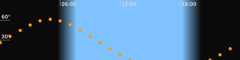Höchster Stand (Kulmination)05:01 Uhr (h = 61,3°)