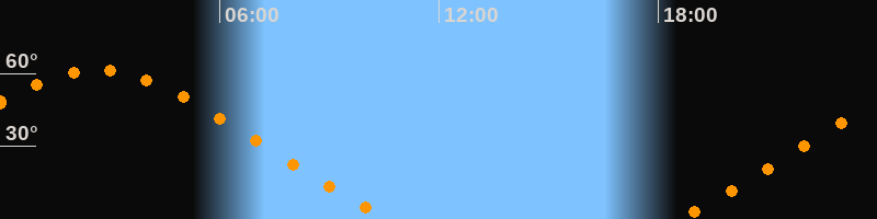 Höchster Stand (Kulmination)02:38 Uhr (h = 61,3°)