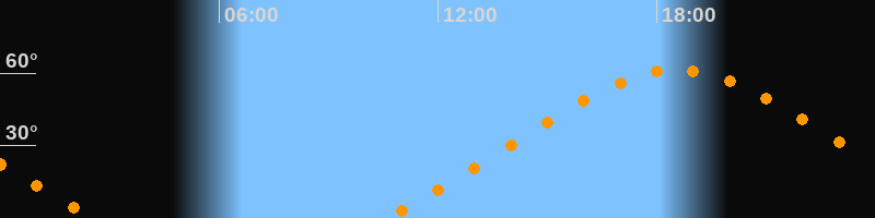 Höchster Stand (Kulmination)18:33 Uhr (h = 61,3°)