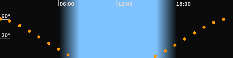 Aufgang15:35 Uhr im Nordosten (αAz = 52,8°)