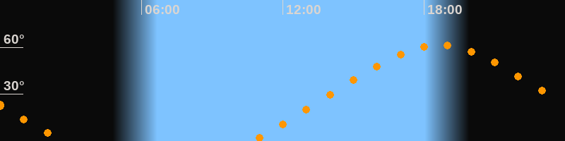 Höchster Stand (Kulmination)18:38 Uhr (h = 61,3°)