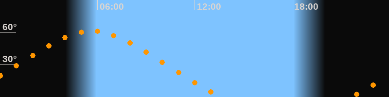 Höchster Stand (Kulmination)05:39 Uhr (h = 61,3°)